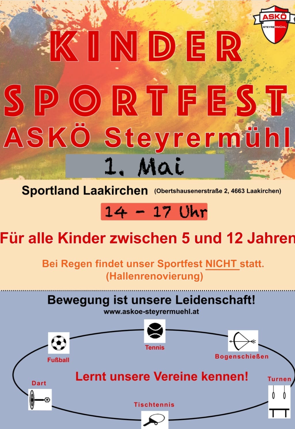 Einladung zum ASKÖ-Kindersportfest am Staatsfeiertag (1. Mai) im Sportland Laakirchen |