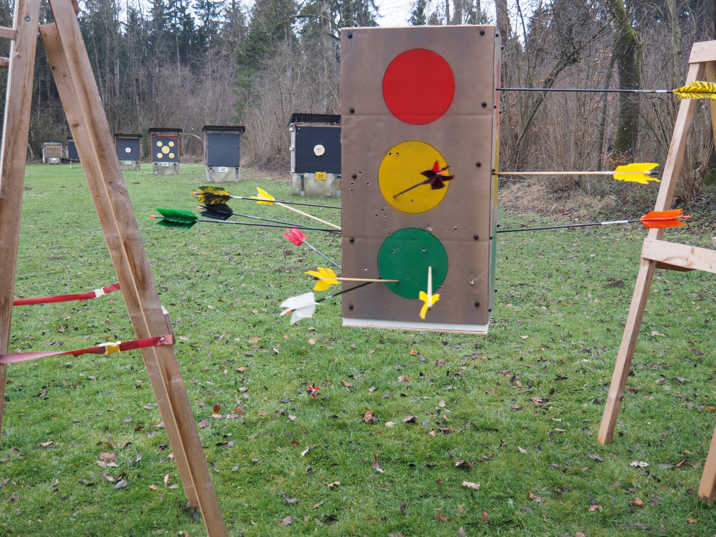 Es ist eine besondere Tradition, die Johann Suchan seit vielen Jahren pflegt. In seiner Werkstätte zuhause bastelt er die kuriosesten "Zielscheiben", die beim Neujahrsschießen die erste Bewährungsprobe im neuen Jahr sind. Heuer stand Verkehrserziehung am Programm - mit Flu-Flu-Pfeilen musste eine Schaumstoff-Ampel ins Visier genommen werden. Mit ausreichend Glühwein intus war das Zielwasser sicherlich kein Problem. Zum Abschluss gab es in der Bogensporthalle für alle noch Würstel und einen selbsterwählten Preis aus der Tombola.