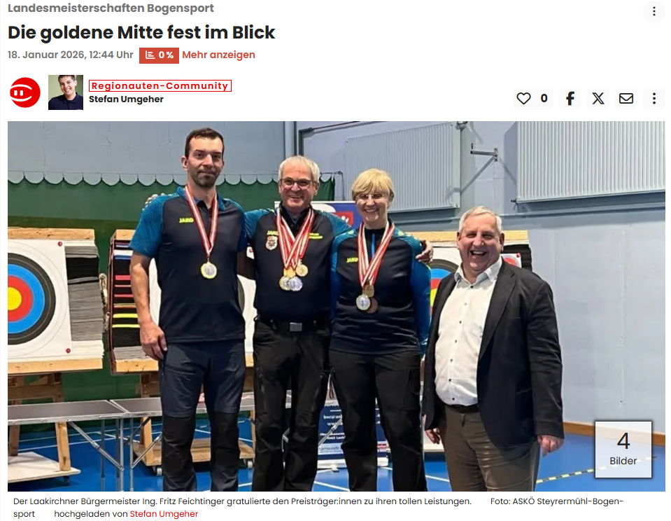 DIE GOLDENE MITTE FEST IM BLICK. Bezirksrundschau Salzkammergut online. Online verfügbar unter Landesmeisterschaften Bogensport: Die goldene Mitte fest im Blick - Salzkammergut [Zugriff: 18.01.2026]