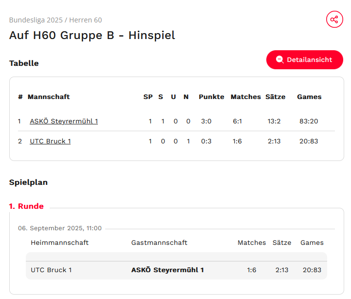 TV Pinsdorf 2 mit 3:6 verloren. Details Spielbericht